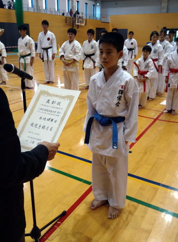 | 会 長 賞 | 石倉 怜(意東小学校) | 小1~3年無級~7級形試合 優勝 |