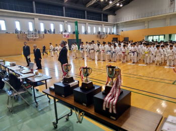 三島杯第6回しまね空手道親善大会 2025年11月30日(日) 松江市総合体育館サブアリーナにて開催。 遠くは鳥取市、益田市より幼年から一般迄、約140名の選手がエントリー。当日、インフルエンザ等で欠場者が多数ありましたが、成功裏に無事終了する事が出来ました。 参加された選手、多くの応援の保護者の皆様、競技役員、審判員の皆様、大変お世話になりました。第7回大会も多くの選手が参加し、すばらしい大会を目指したいと思います。 今大会より下記の賞が追加されました。 |