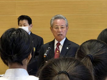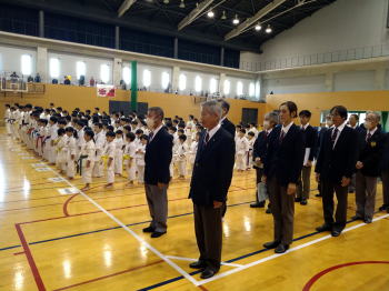 | 松江市空手道連盟会長 三島 進 氏には多年にわたり、松江地区における空手道の普及・振興に多大なご尽力を賜り心より 感謝の意を表すると共に、その功績を称え、本大会名を「三島杯しまね空手道親善大会」と命名。 |